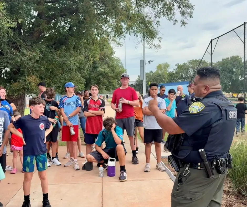 We’re thankful to Captain Travis Rakestraw from the Wichita Police Department North Patrol Division for being a member of our board of directors and for spearheading many of our efforts with law enforcement personnel. We have an annual Kickapalooza event at McAdams Park, during which area police officers, fire department personnel and others participate in kickball with League 42 players.